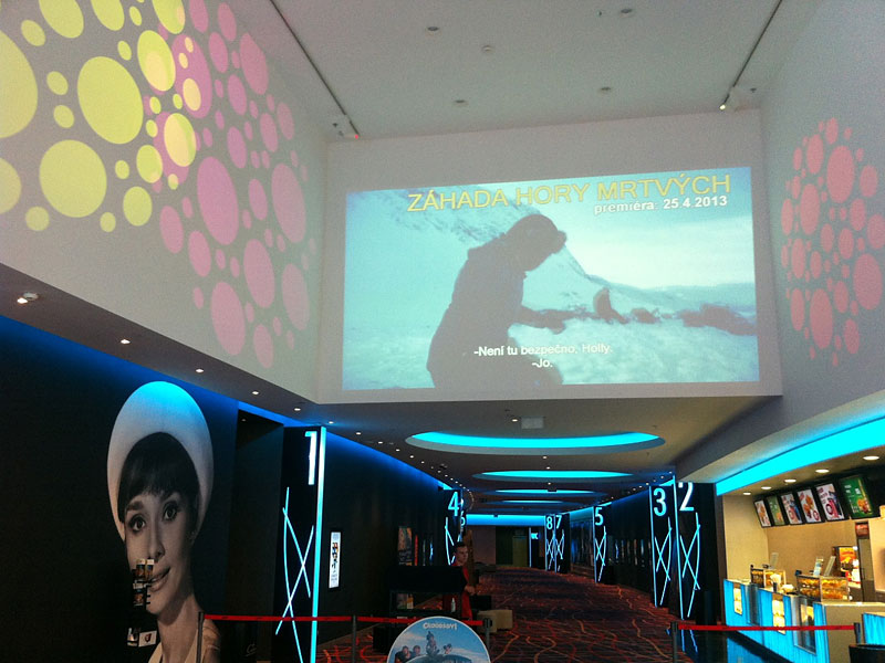 Inside the “Centrum ÄŒerný Most” you will find the new multiplex cinema of the CineStar group, equipped with 9 theatres and a total of 1,675 seats. The access area to the theatres is illustrated with coloured light patterns from six PHOS LT 20 LED projectors that are installed on lighting tracks under the ceiling.