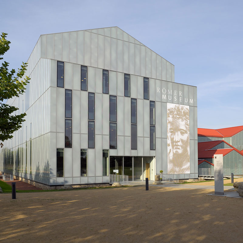 The new Roman Museum, part of the archaeological park Xanten was opened on the 16 August, 2008. The complex is a combination of an archaeological protective building and a Museum, including overall 1900 square metres of exhibition space. The Museum was raised on the foundation walls of the tremendous entry hall of an ancient Roman bathhouse. Form and dimensions of the new museum correspond approximately to the monumental entry hall with a height of 25 metres, which was probably one of the largest buildings in the Roman colony.