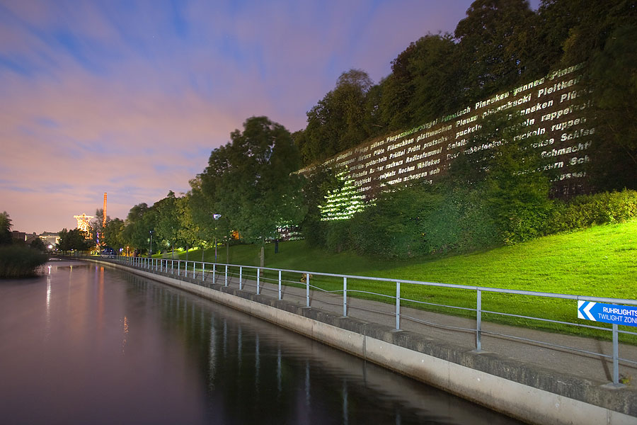 In the rural countryside of the lower Ruhr valley that’s known for its agriculture, nature and industrial culture, the European Capital Of Culture "RUHR 2010" presents 11 internationally acclaimed light artists. From September 2010 the festivals “Ruhrlights: Twilight zone” transforms the Ruhr valley between Hagen and Duisburg into a fascinating route of light.