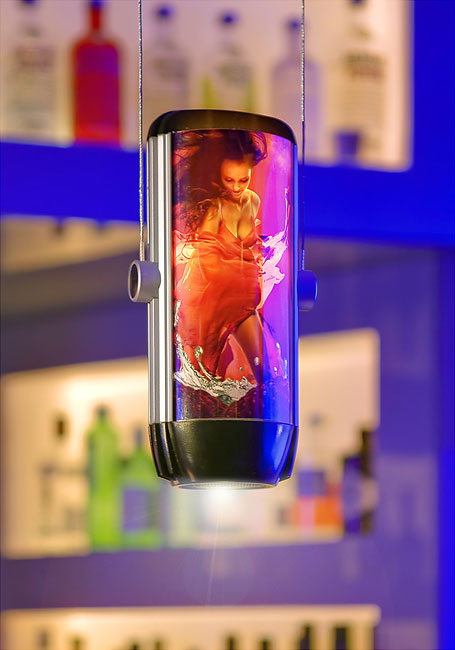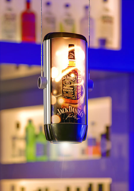 The two lampshades of BIL are equipped with pellucid foils, designed by your demand. With a size of 185 x 95 mm the foils are printable by a resolution of 200 dpi, in addition, they are back lit. By swapping the foil slides between the lampshades, the trade mark logos or individually created messages can simply be changed.